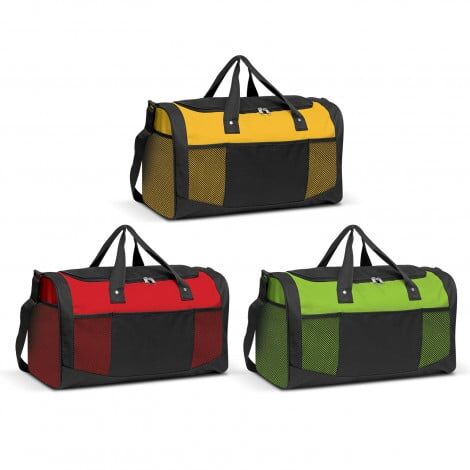 Stylish duffle bag which is manufactured from robust 600D polyester. It has woven carry handles which are riveted to the bag for added strength and an adjustable woven shoulder strap. Other features include a slip pocket on the front and three external mesh pockets.