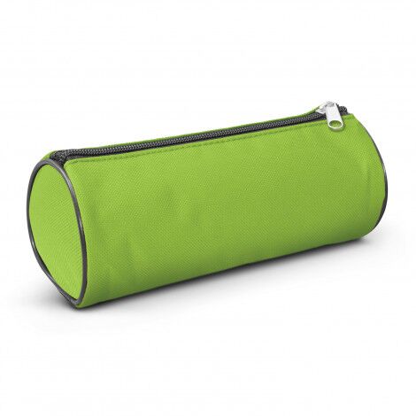 Large round pencil case which is manufactured from 600D polyester with a foam padded inner lining and a zippered closure.