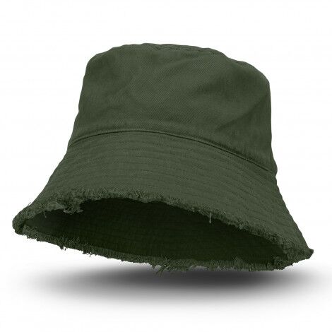 Stylish bucket hat made from 100% cotton twill featuring an edgy frayed finish and a built-in sweatband. It is available in two sizes, which will fit most people.