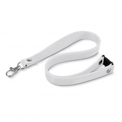 Unique 15mm wide silicone lanyard with a spring loaded metal clip and a safety clip. A production lead time of 25 working days applies to this product by air freight and larger orders can be sea freighted on request to reduce the freight cost.