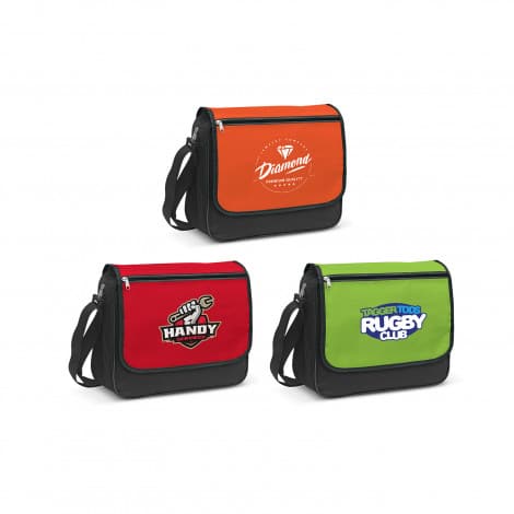 Classic messenger bag with a Velcro closure which is manufactured from tough 600D polyester. It has a large gusset for increased capacity and an adjustable woven shoulder strap. Other features include a large zippered front pocket and a mesh water bottle carrier.