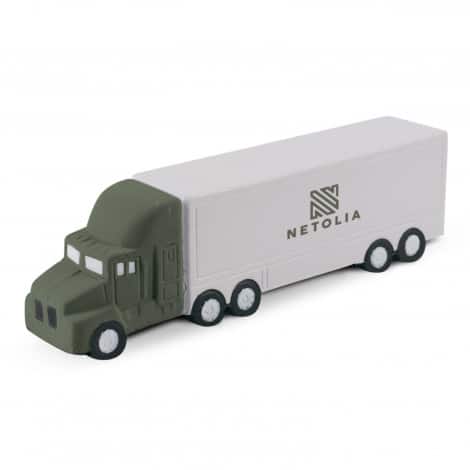 Squeezable truck-shaped stress reliever made from soft polyurethane.