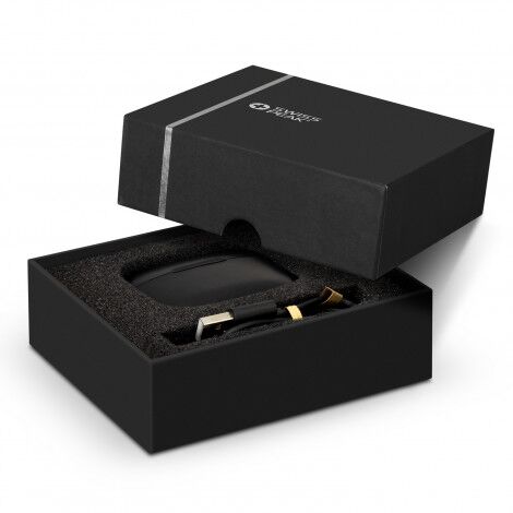 Three different eartip sizes are included to ensure a comfortable fit for most users. Additionally, the earbuds are equipped with built-in controls for adjusting volume, selecting tracks, and handling calls. The earbuds are elegantly presented in a black gift box with Swiss Peak branding, making them an ideal gift for any music enthusiast.