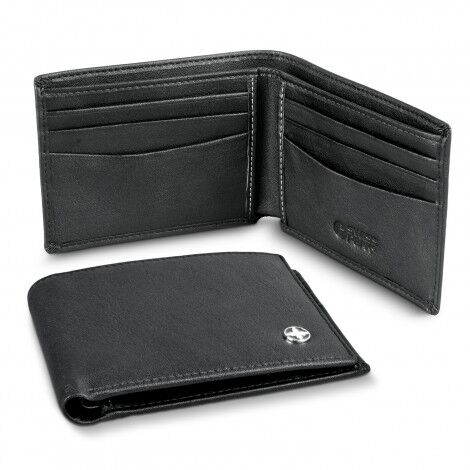 Keep your belongings safe with this durable timeless slim bi-fold wallet with anti-skimming protection. Manufactured from PU leather, the wallet hosts plenty of room with 6 slots fitting a maximum of 12 cards. The Swiss Peak logo is a button on the front of the wallets and tastefully debossed on the inside of the wallet. Laser engraving on this product comes as a natural etch. This premium wallet is presented in a deluxe Swiss Peak gift box.