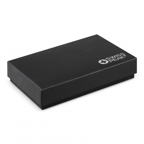 - Presentation: Black gift box with Swiss Peak branding