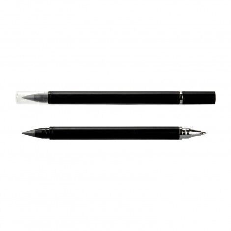 - Plastic dual-tip pen featuring metal alloy tip and ballpoint pen