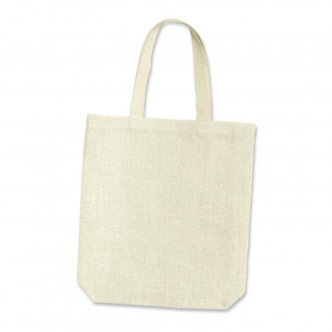 Large jute tote bag with strong cotton webbing handles. It has a gusset in the base for increased carrying capacity.