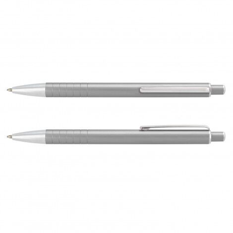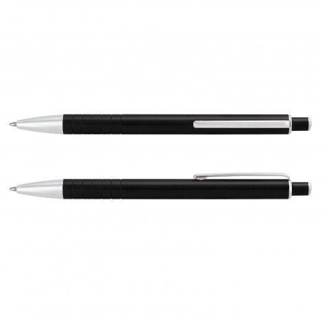 Retractable aluminium ball pen with a matte anodised barrel, a unique patterned grip, and shiny chrome trim. It has 800m of black German manufactured Dokumental ink and can be presented in an optional pen sleeve or gift box.