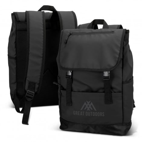 Built for daily commutes and weekend adventures, the Trek Soft Touch Backpack offers 17L of adaptable storage. It features a stylish flap top with adjustable clip closures, while side snaps allow you to expand or tighten the main compartment as needed. Made from 600D polyester with a water-resistant soft touch PU coating, it has a large main compartment, an internal sleeve for devices up to 16.5″, a zippered front pocket, and two large side pockets. Designed for all-day wear, the padded back and shoulder straps provide lasting comfort on the go.