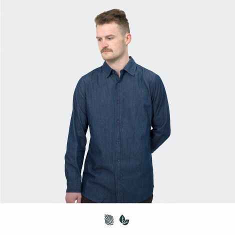 Stylish cut and sewn men’s shirt made from soft 150gsm cotton denim, perfect for retail and hospitality workplaces. The shirt features long sleeves with single button cuffs, a seven-button placket and a classic collar. Available in eight sizes, the shirt should be washed with similar colours before first use.