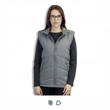 The Newport Women’s Puffer Vest is designed to keep you warm and comfortable in style. It features a cosy heathered polyester outer shell with chevron-style baffles and a nylon lining. The vest is filled with 180gsm 100% GRS certified recycled polyester and features reliable YKK zippers with comfortable pullers. Handy topstitched side pockets with zippers help to keep hands warm and a structured, filled collar protects your neck from the chill. Newport is available in seven sizes and offers the option of selecting a coloured zipper pullers from the standard colour range.
