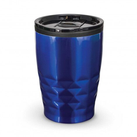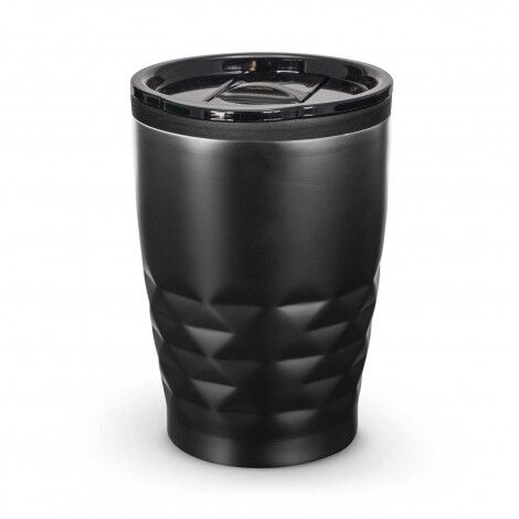 Trendy 400ml double wall coffee cup which will keep drinks hot for longer. It has a smart diamond patterned stainless steel outer wall and a polypropylene inner wall. Urban has a secure plastic push on lid with a splashproof sliding closure and a soft non-marking base. It is BPA-free and laser engraves to a shiny steel finish except for the silver colour, which engraves to a natural etch. An optional natural gift box is available on request. This product is not dishwasher safe and handwashing is recommended.