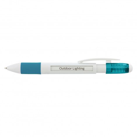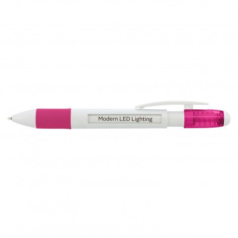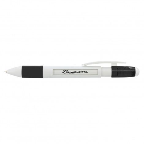 Retractable plastic ballpoint pen with a white barrel, a soft rubber grip and a rotating inner barrel which holds six different messages. Each time the push button is clicked, a new message is displayed in the two clear barrel windows. It has a blue or black refill with 1200 metres of German manufactured Dokumental ink. A production lead time of 40 working days applies to this product by air freight and orders can be sea freighted on request to reduce the freight cost.