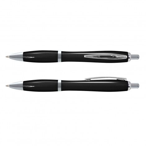 - Retractable plastic ballpoint pen with shiny chrome trim