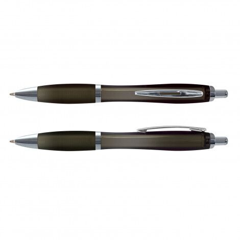 Retractable plastic ballpoint pen with a translucent barrel, a frosted translucent soft-touch grip and shiny chrome trim. It has a black large volume refill with 1800 metres of German manufactured Dokumental ink.
