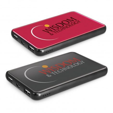 Powerful 6000mAh power bank which offers a full colour resin coated finish. The input power is 5V/1.5 Amps and it has two charging ports with outputs of 5V/1.0 Amp and 5V/2.1 Amps. It can be recharged in 4-5 hours from a USB port or a mains adapter. Comprehensive instructions and a Micro-B USB cable are included. An optional EVA carry case and a triple connector cable are available on request.
