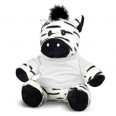 Soft zebra plush toy with embroidered eyes and a polyester t-shirt which is available in eleven colours. Plush animals provide a cute and cuddly branding option and are great for brand recognition and spreading goodwill.